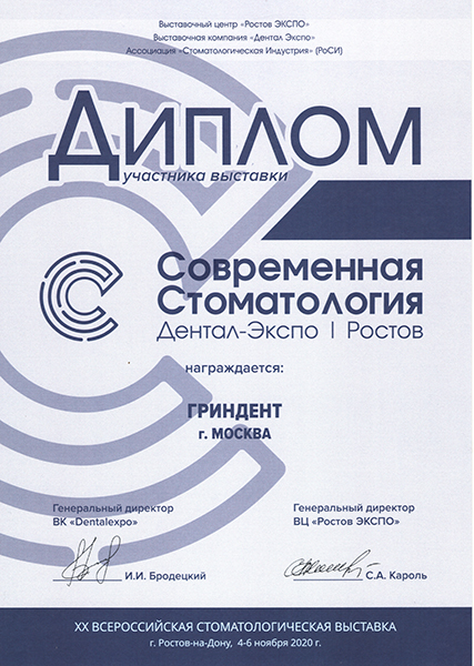 Диплом участника выставки «Современная Стоматология Дентал-Экспо Ростов»